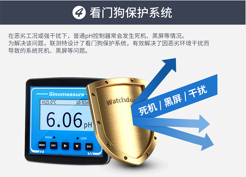 SIN-pH3.0儀表實現4-20mA信號輸出、繼電器報警輸出以及RS485通訊,搭配PH上位機軟件,可實現對多臺PH控制器聯機進行系統性監控的功能。