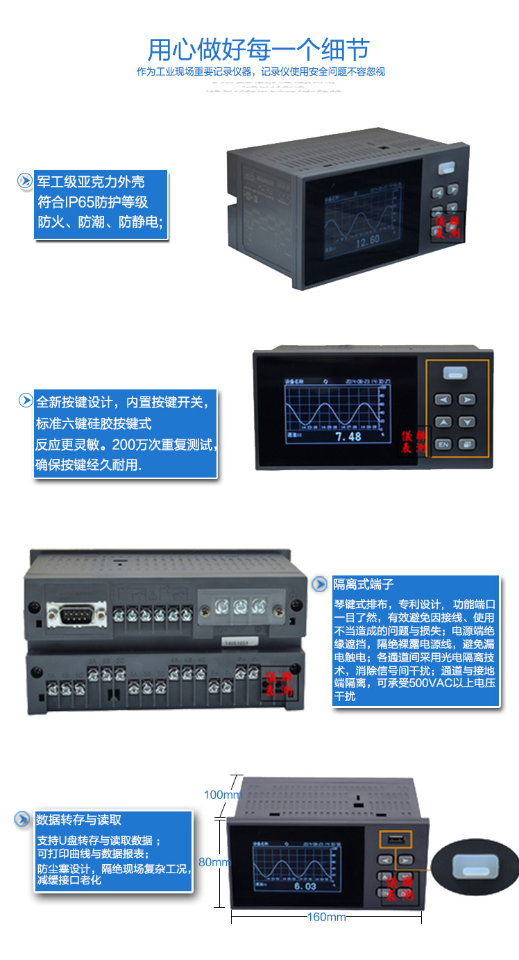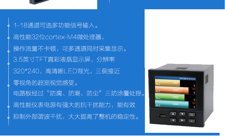 SIN-R200D系列無紙記錄儀可自由組態輸入標準電流、標準電壓、熱電偶、熱電阻、頻率等信號,可實現為傳感器配電和繼電器報警輸出,并且可通過U盤或通訊方式與上位機進行數據交換。無紙記錄儀 本身具有實時數據顯示畫面、曲線顯示畫面以及棒圖數據顯示畫面,同時,可以與微型打印機相連 接,實現現場打印功能,與聲光報警器連接,實現現場聲光報警功能。