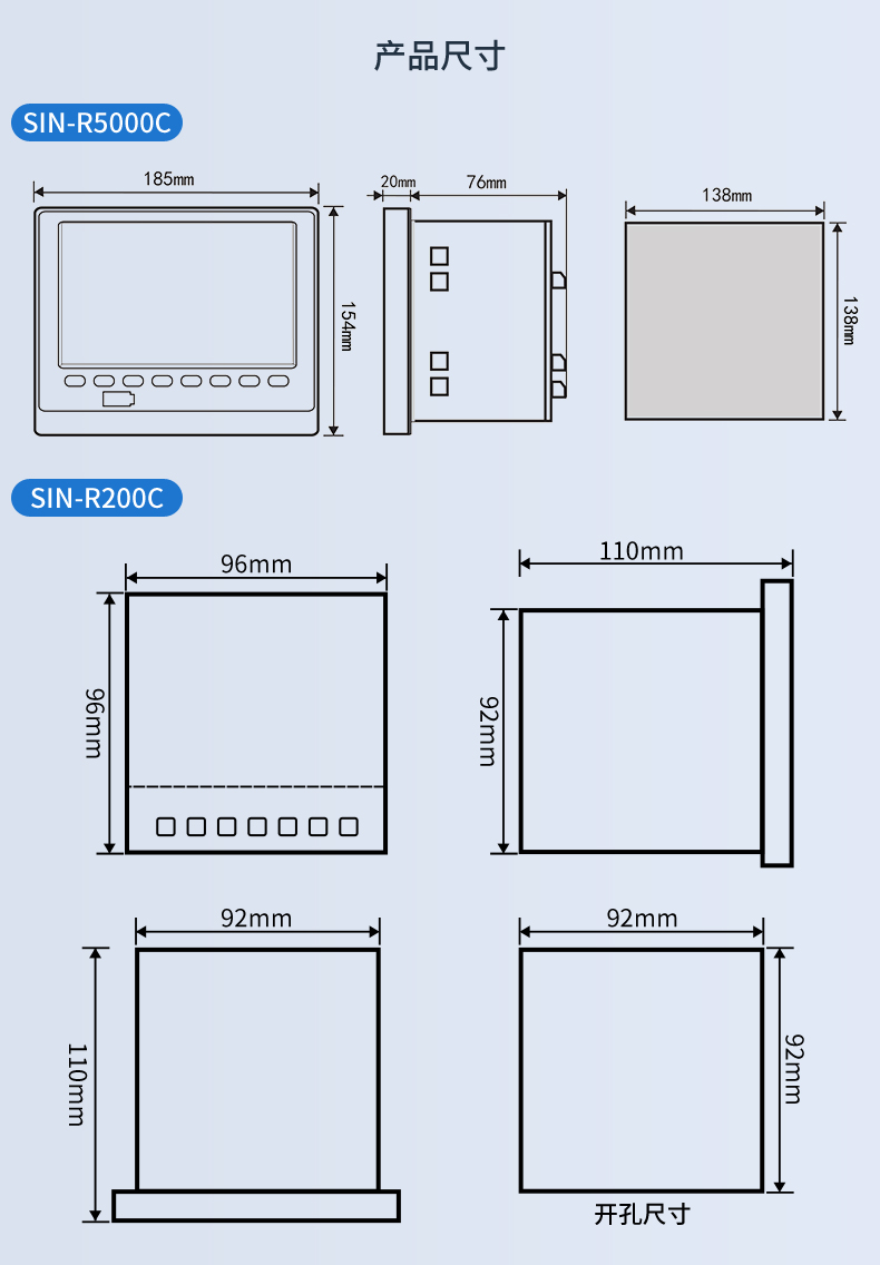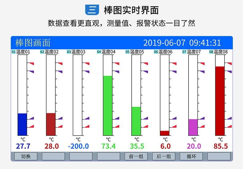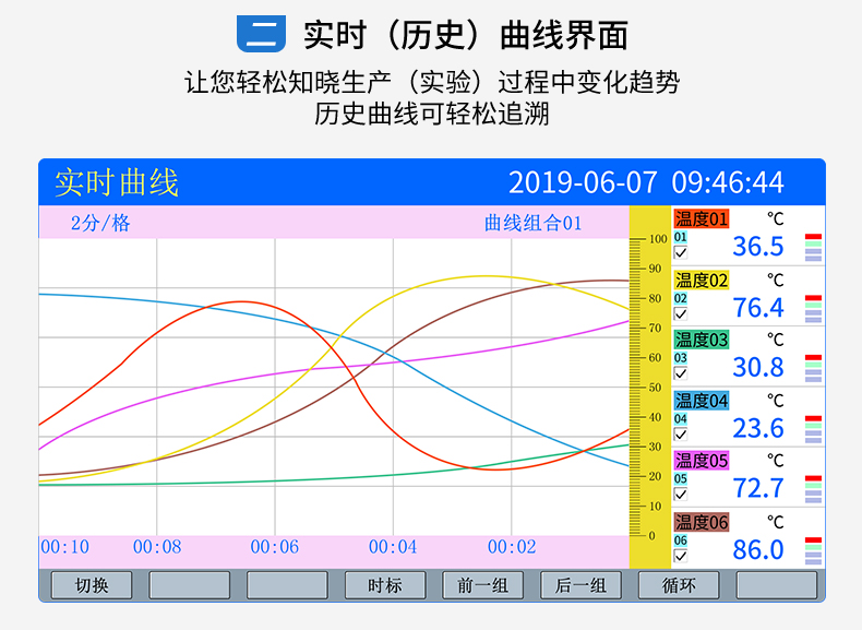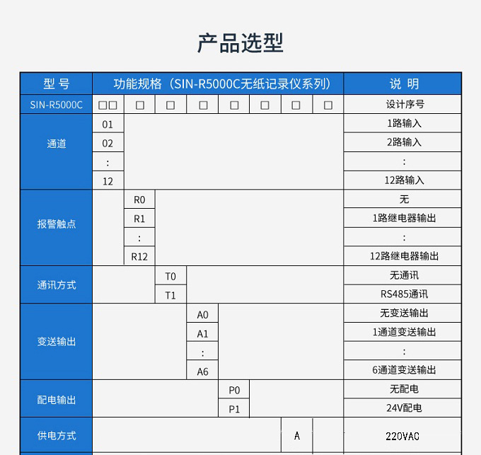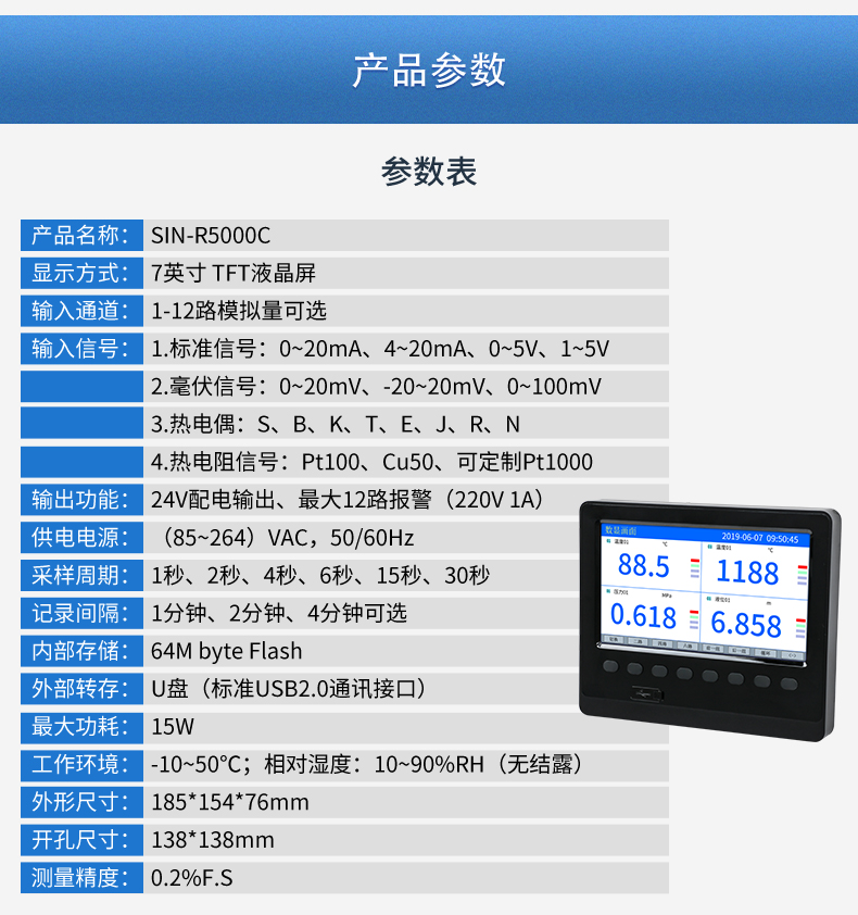 SIN-R5000C無紙記錄儀 12 路萬能輸入(可組態選擇輸入:標準電壓、標準電流、熱電偶、熱電阻、毫伏等)。可帶 12 路報警輸出或 6 路模擬量變送輸出,RS485 通訊接口,以太網接口,微型打印機接口和 USB 接口,SD 卡插座;可提供傳感器配電;具有強大的顯示功能,實時曲線顯示,歷史曲線追憶,棒圖顯示,報警列表顯示等。人性化的外觀設計、完美的功能體現、可靠的硬件品質、精湛的制造工藝,使儀表具有更高的性能價格比。