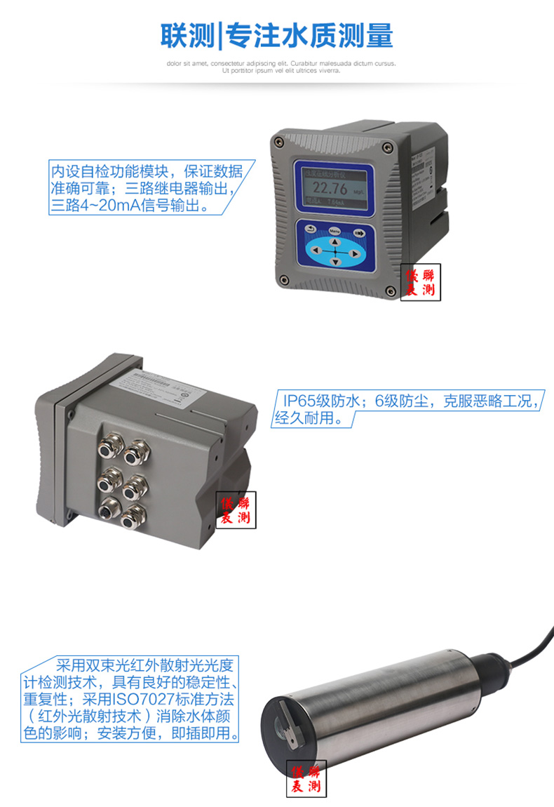 聯測SIN-PTU200在線濁度分析儀內置微處理器,適用于于污水廠、自來水廠、水站、地表水、工業等領域濁度監測,例如:污水廠沉淀池、造紙漿液池、提升泵站、氧化溝濁度測量等。